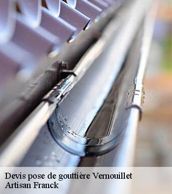 Pour que vous puissiez obtenir rapidement un devis de pose de gouttière en zinc, adressez-vous directement à l’équipe du couvreur professionnel Artisan Franck. Ce dernier vous prépare le document en moins d’une heure si vous vous délacer auprès de son bureau. Cette équipe vous reçoit du lundi au vendredi pendant les heures de travail habituels. L’établissement de devis est gratuit et sans engagement chez ce prestataire. Profitez-en donc pour découvrir ses conditions tarifaires.