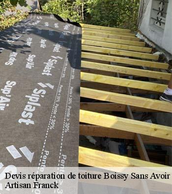 Artisan Franck est un professionnel reconnu en matière de réparation de toiture. Que vous avez un toit plat, arrondi ou en pente, et quel que soit le type de couverture dont vous disposez, si vous rencontrez n’importe quel souci avec votre structure, choisissez de vous adressez à son équipe. Cette dernière peut intervenir partout dans la ville de Boissy Sans Avoir, dans le 78490, mais aussi dans ses environs. Si vous voulez découvrir ses prix, vous pouvez lui demander de vous établir un devis détaillé sans engagement.