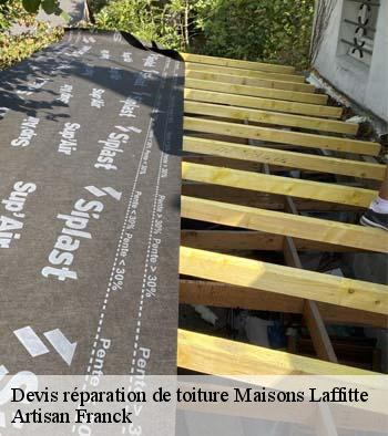 Dans le cas où vous rencontrez un quelconque problème avec votre toiture, qu’il s’agisse de fuite, de soulèvement de tuiles ou autres, choisissez de faire appel à l’expertise du couvreur professionnel Artisan Franck. Ce dernier est un expert reconnu dans le métier et il peut se déplacer dans toute la ville de Maisons Laffitte, dans le 78600, en vous proposant ses services à des prix compétitifs. Pour en savoir plus, vous pouvez le contacter afin qu’il vous établisse un devis de réparation de toiture gratuit.