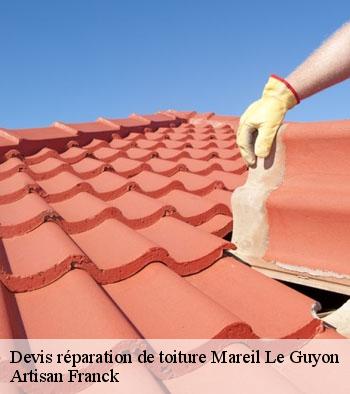 Artisan Franck est un professionnel reconnu en matière de réparation de toiture. Que vous avez un toit plat, arrondi ou en pente, et quel que soit le type de couverture dont vous disposez, si vous rencontrez n’importe quel souci avec votre structure, choisissez de vous adressez à son équipe. Cette dernière peut intervenir partout dans la ville de Mareil Le Guyon, dans le 78490, mais aussi dans ses environs. Si vous voulez découvrir ses prix, vous pouvez lui demander de vous établir un devis détaillé sans engagement.